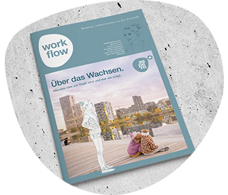 Die Zwischenbilanz „EVA“, unser größtes internes Projekt seit Unternehmensgründung, wurde geboren und im Sommer der Öffentlichkeit vorgestellt. Die darin formulierten Ziele sind für die kommenden Seestadt-Etappen richtungsweisend. EVA ist es auch, die das Cover der jüngsten Ausgabe des workflow ziert. Darin beschäftigen wir uns aus unterschiedlichen Perspektiven mit dem Wachsen – tagtäglich erlebbar in der Seestadt.